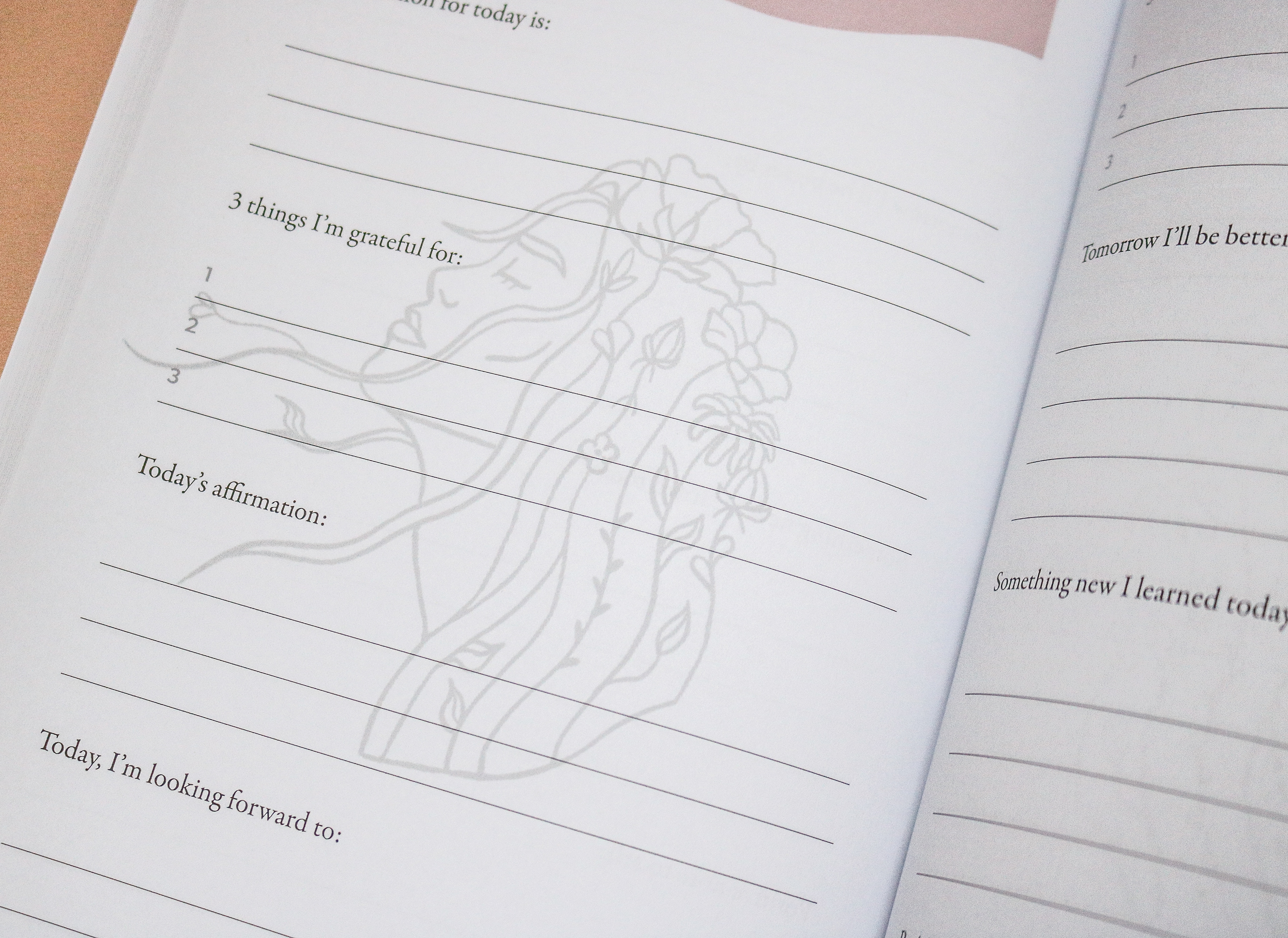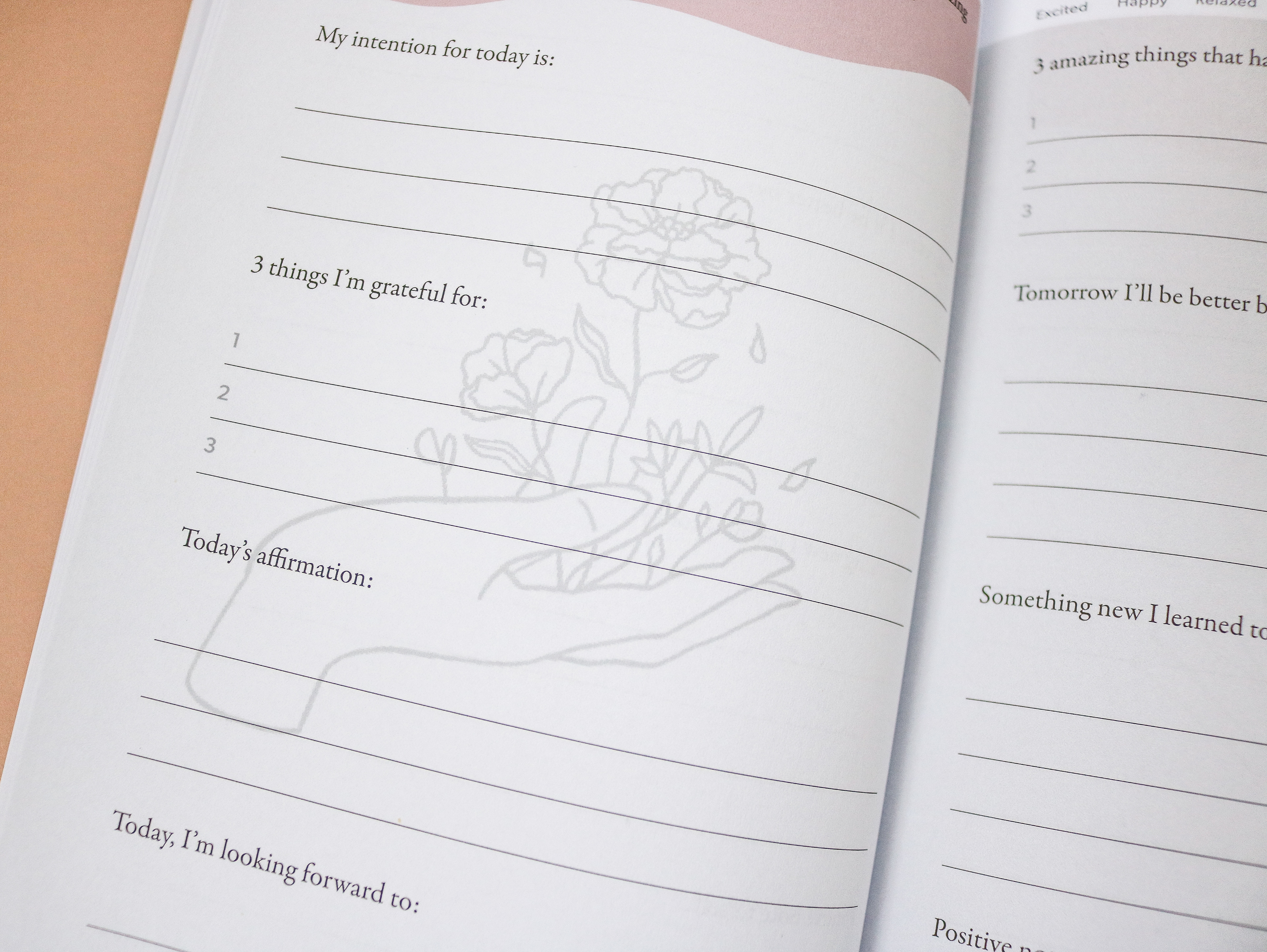 Ona Ena designed a Gratitude journal for “The Confident Woman Daily”. An online platform and blog where they help women build confidence and find their worth. Designed and illustrated to represent growth and transformation using organic forms and flora.