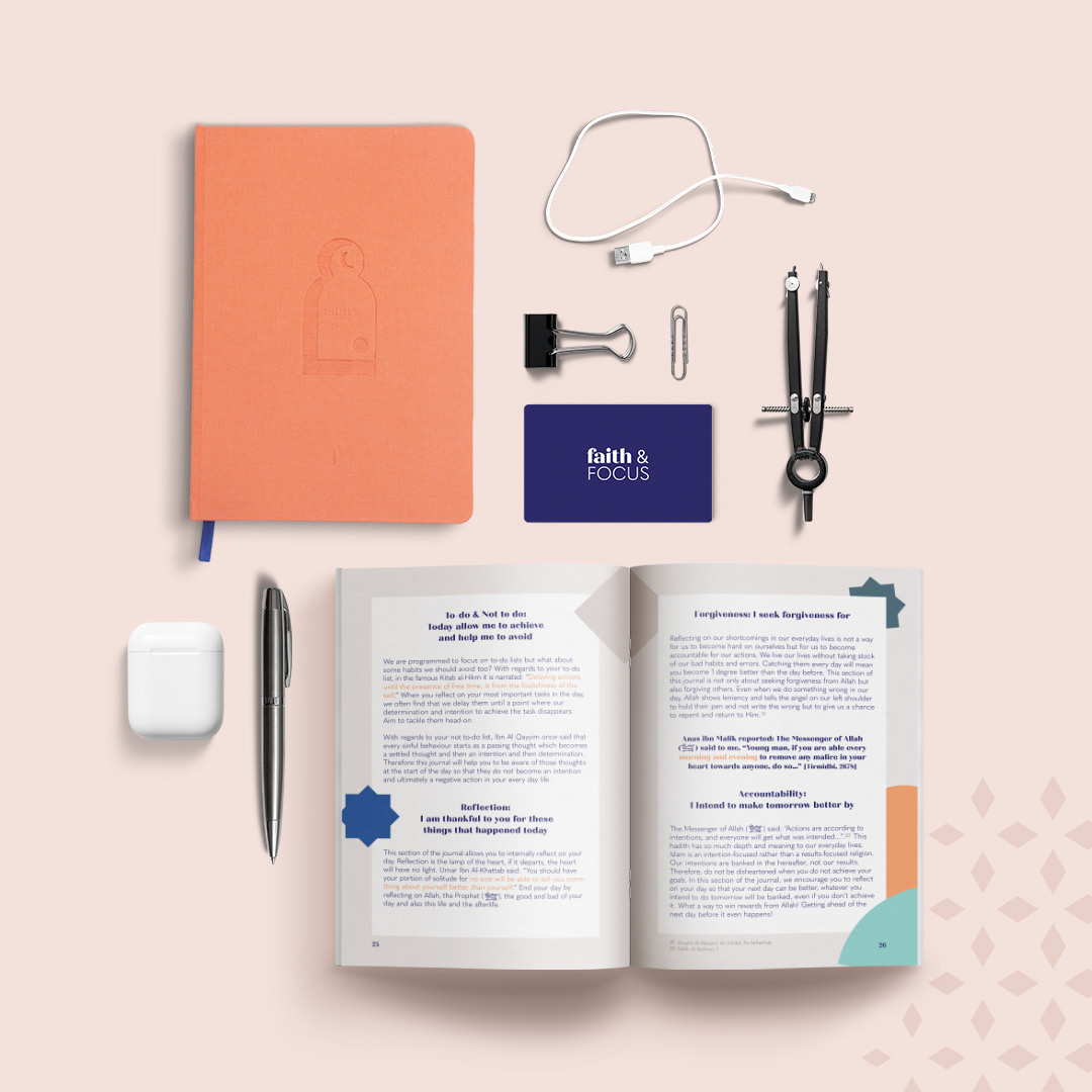 Ona Ena designed the “Morning and Evening” daily journal for muslim oriented stationery brand, and publisher Towards Faith. It's an undated daily planner designed for busy practicing muslims.