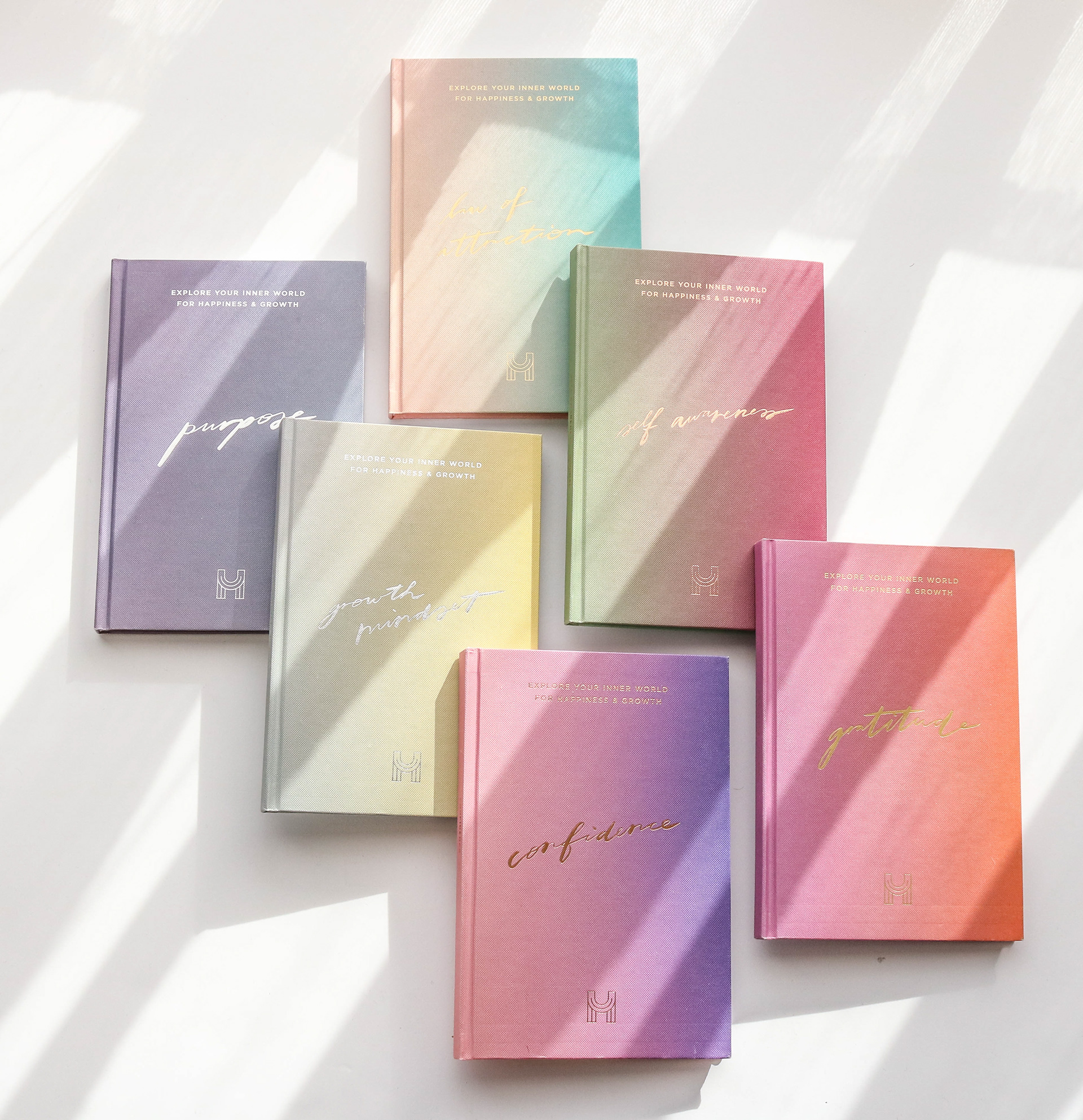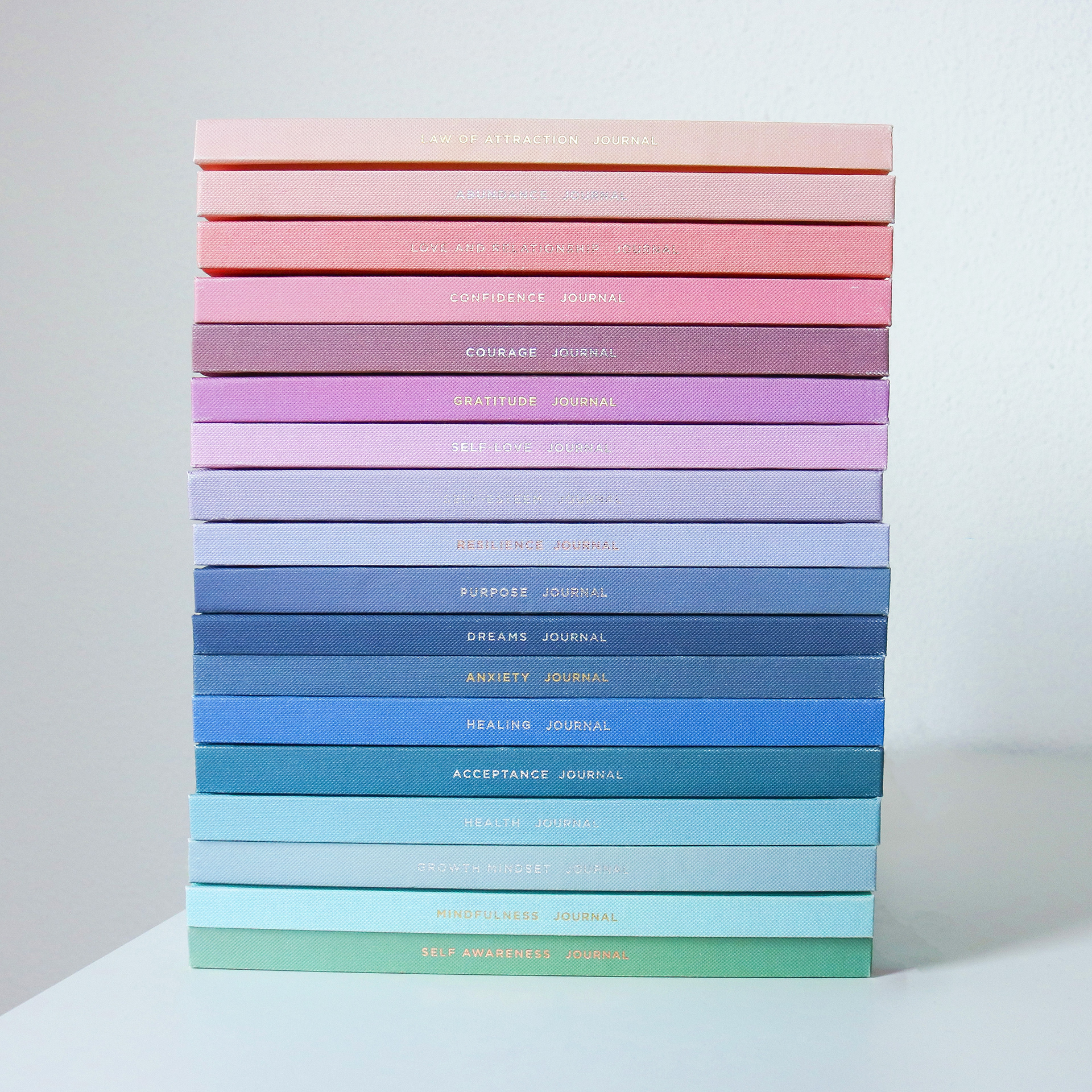 All journals cover a topic that can support you in your self- development journey. With the following subjects: Confidence, Gratitude, Law of Attraction, Purpose, Self- awareness, Anxiety, Mindfulness, Abundance, Love & Relationship, Self- love, Growth Mindset, Self- esteem, Dreams, Healing and Acceptance. They are also the titles of the journals.
