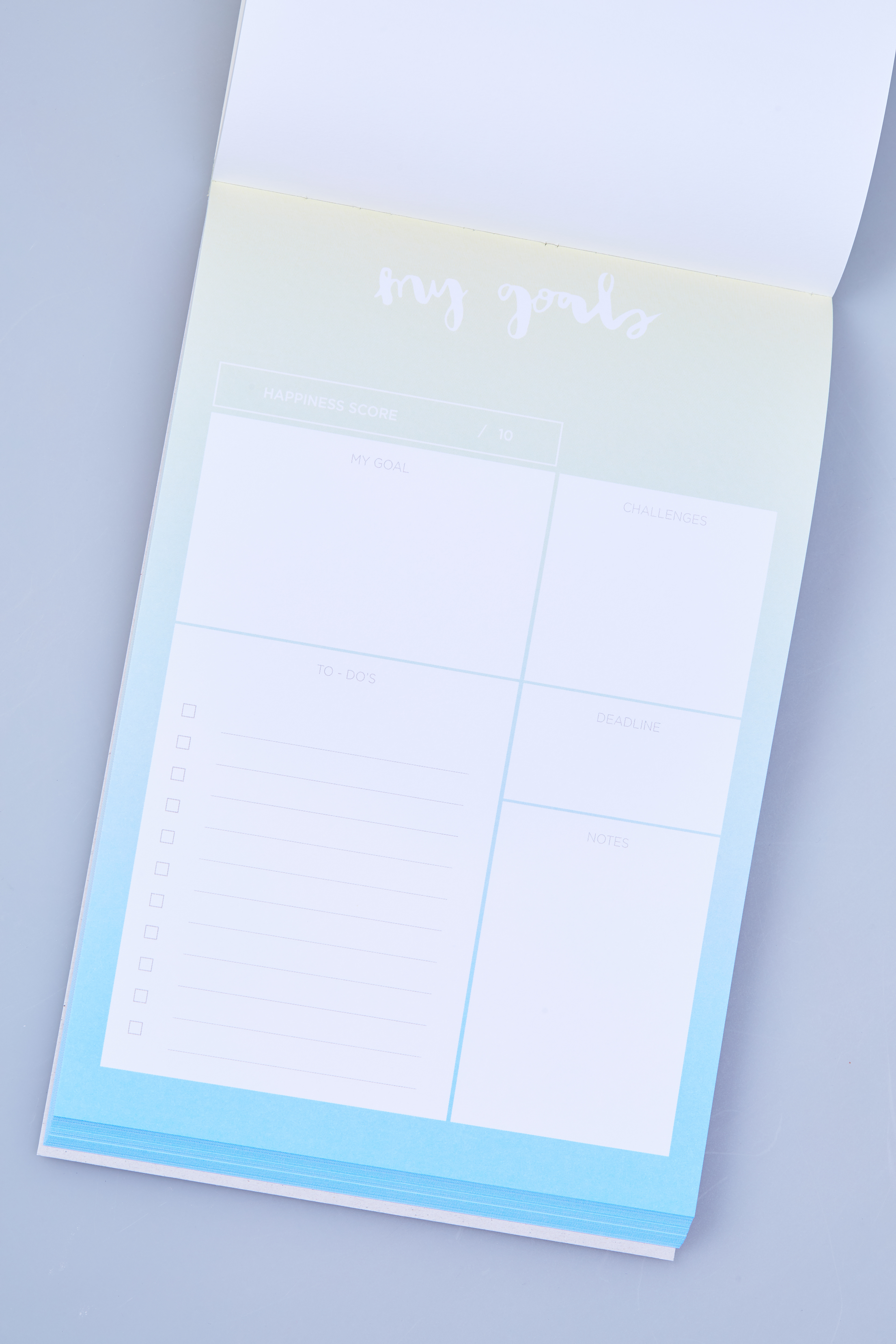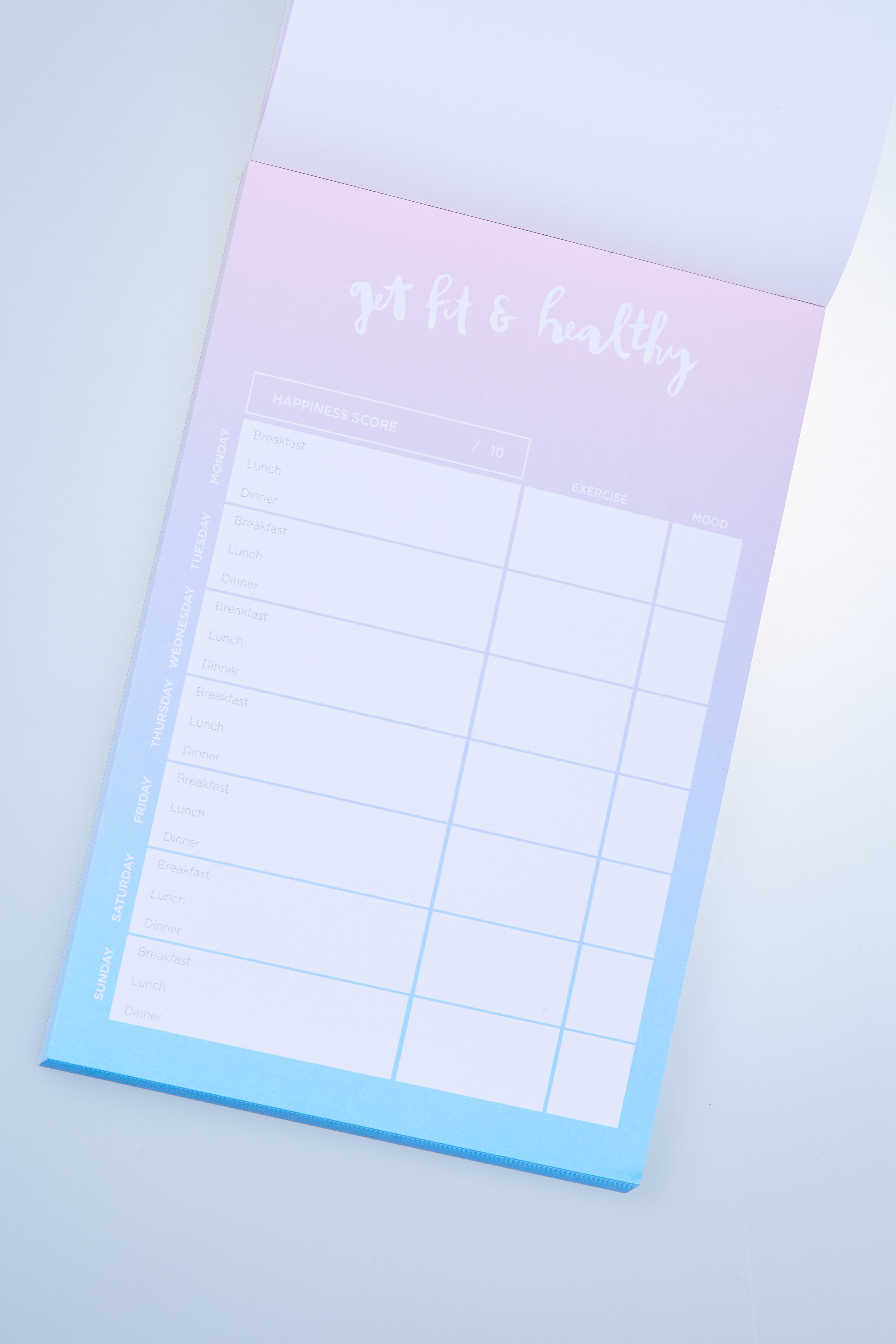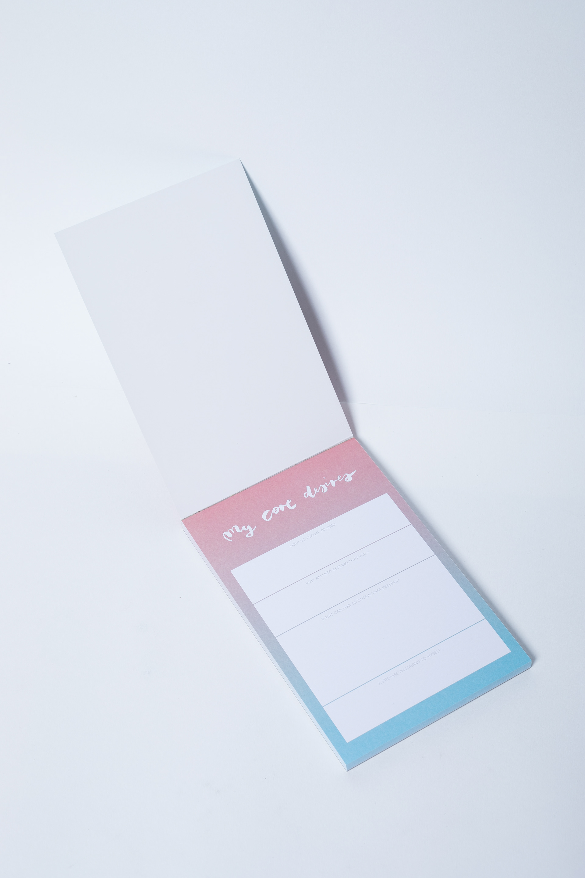 Ona Ena designed 15 different A5 & A4 sized notepads for The Happiness Planner. Each notepad has a unique color combination formed into gradients. Each title of the notepad is handwritten.
