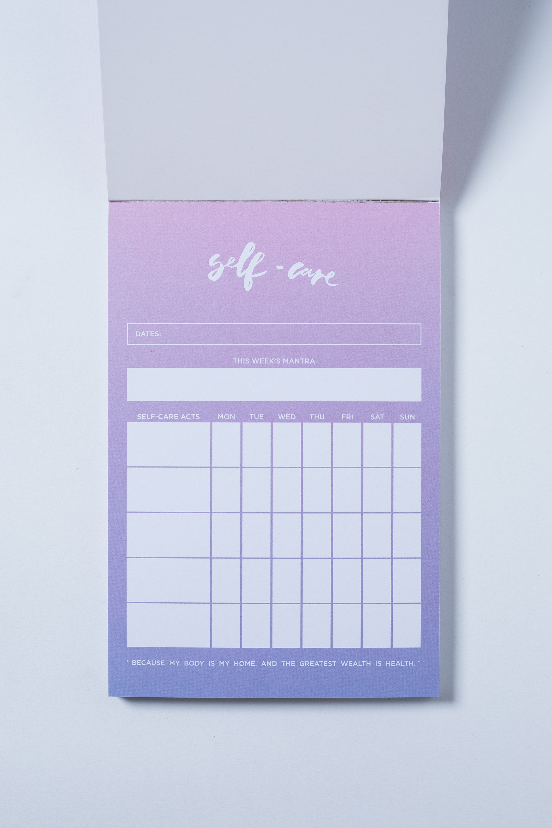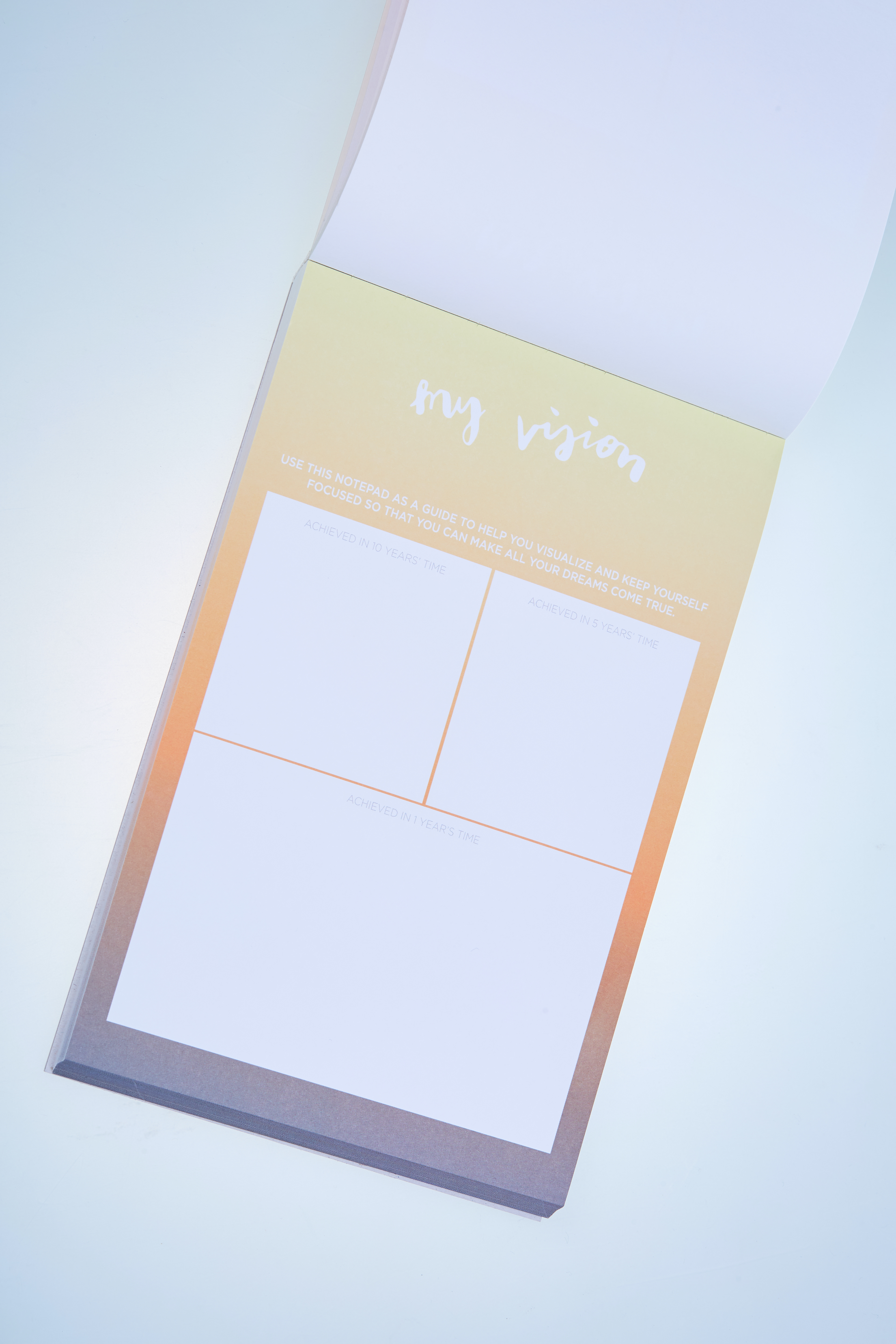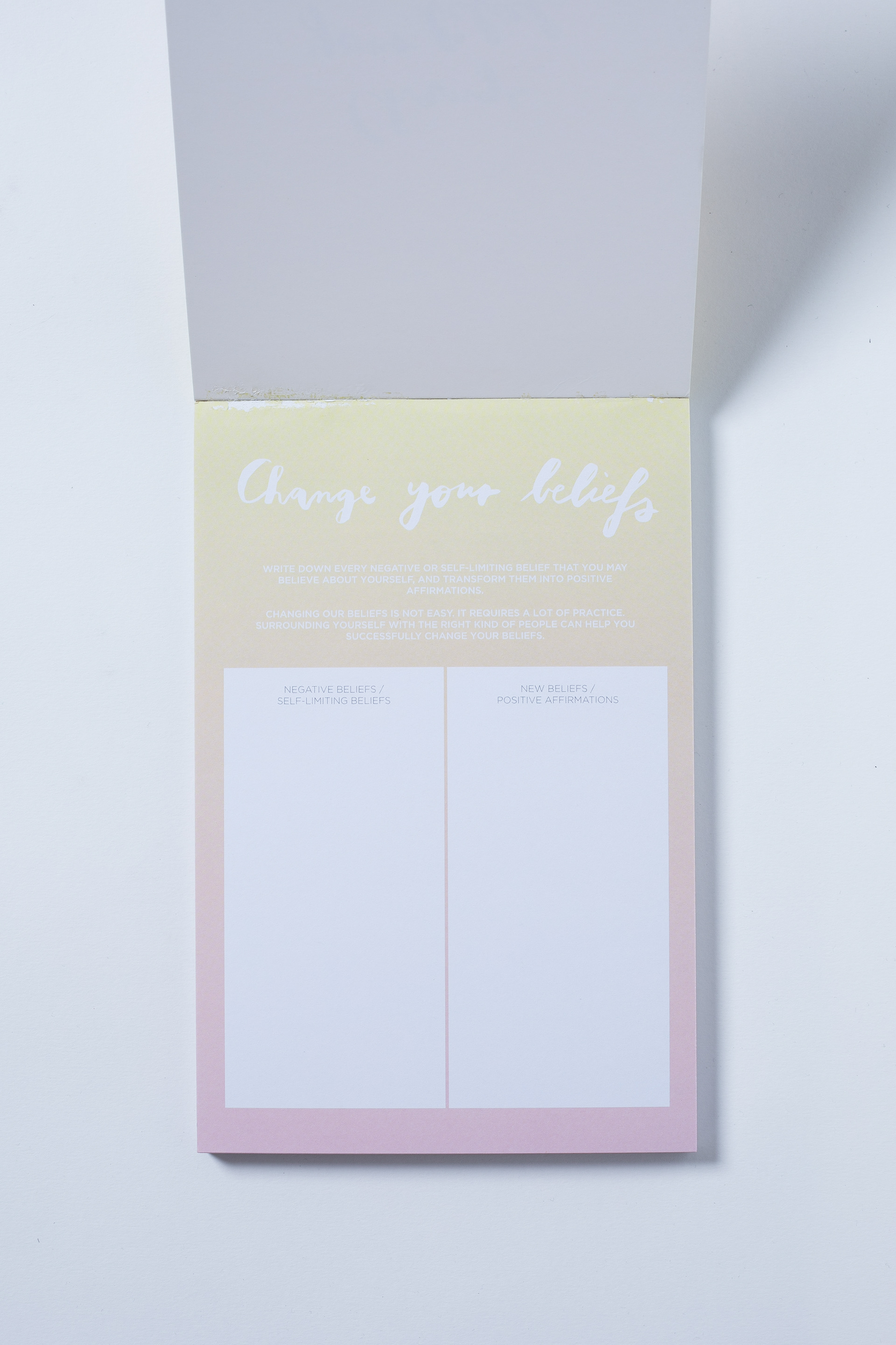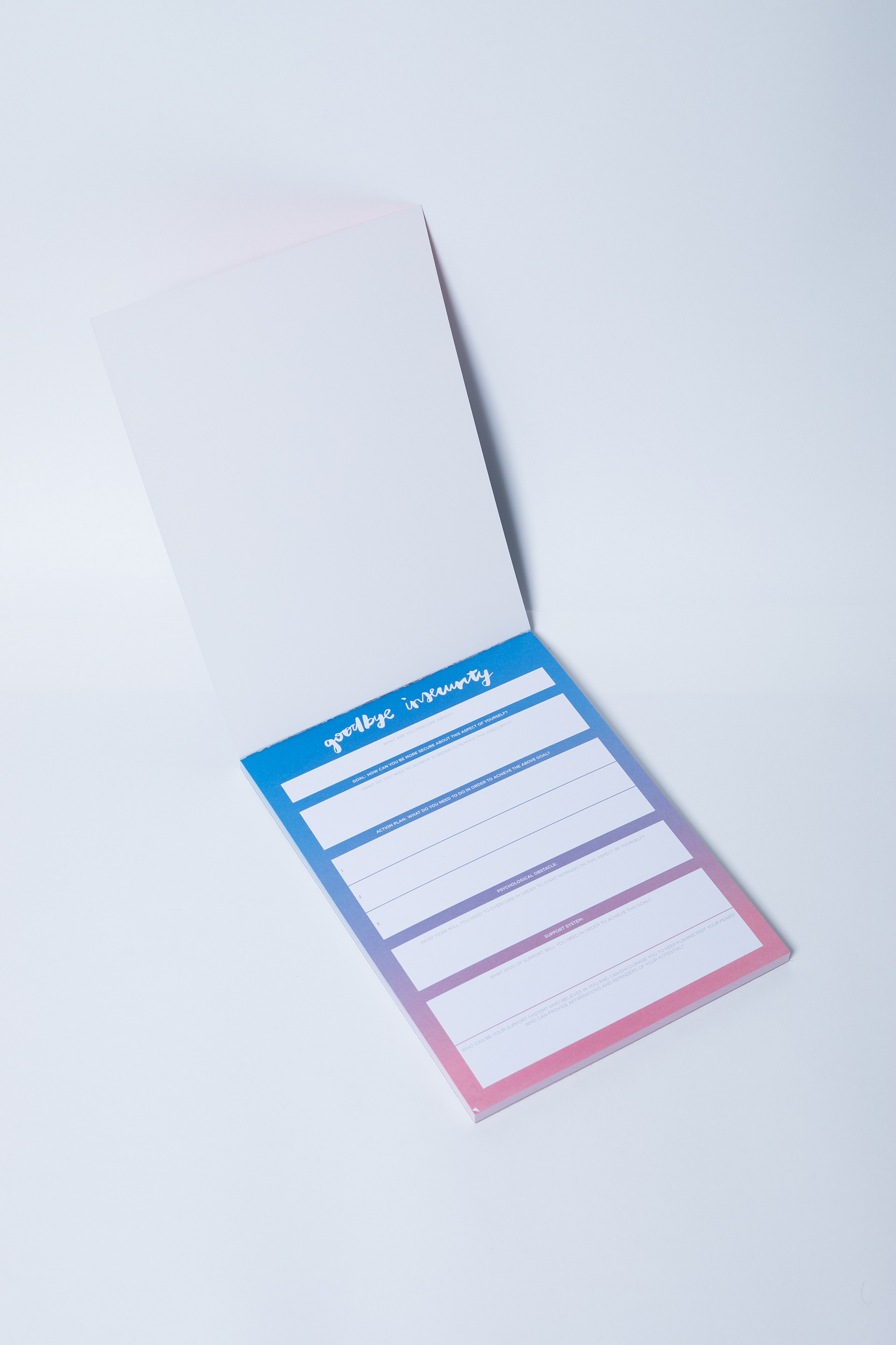 Ona Ena designed 15 different A5 & A4 sized notepads for The Happiness Planner. Each notepad has a unique color combination formed into gradients. Each title of the notepad is handwritten.