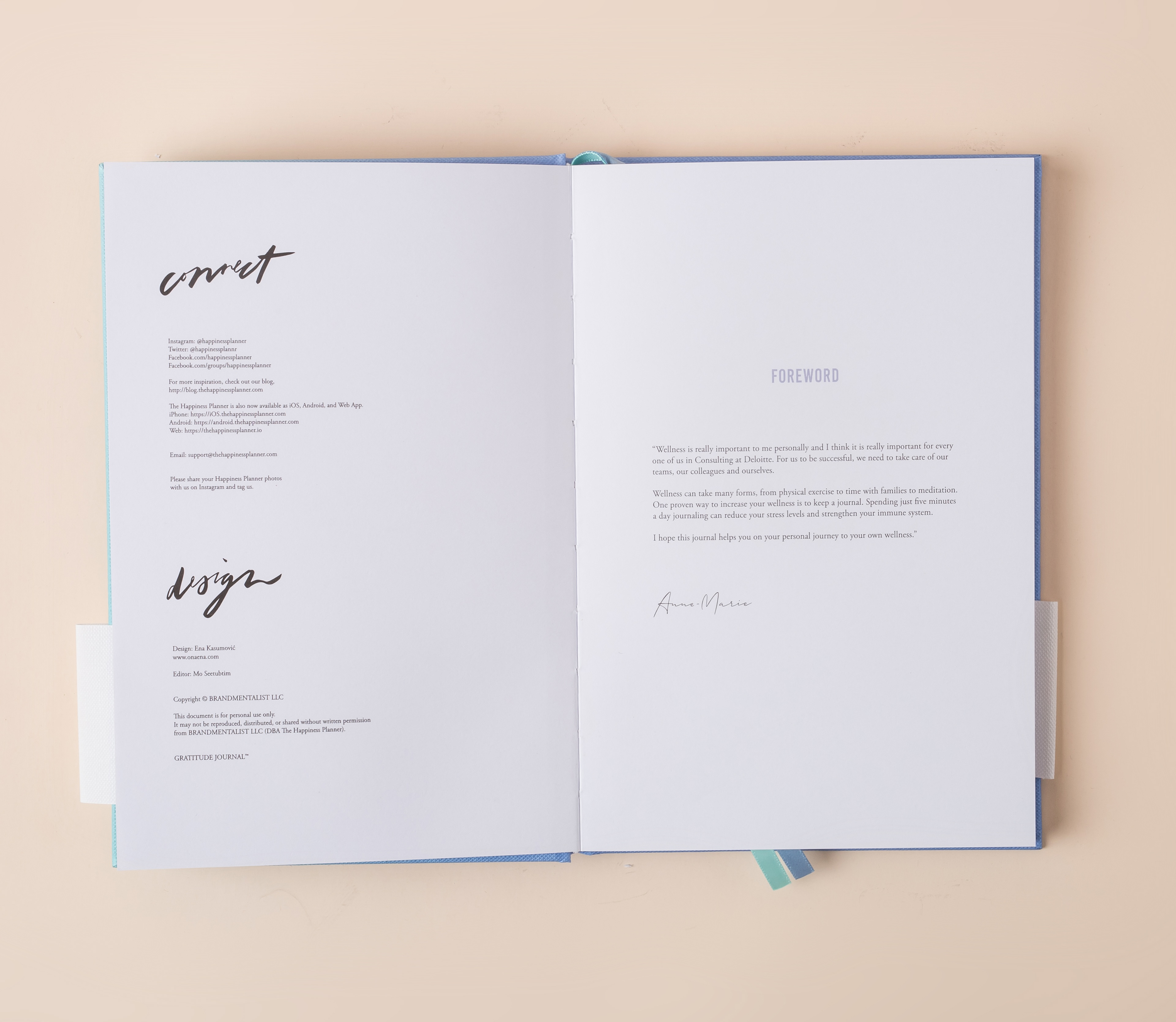Together with the Happiness Planner we designed corporate journals for several companies. The most prominent are for the teams of Netflix, Landmark Worldwide, Lifeplus, Carroll hospital Maryland and Deloitte.